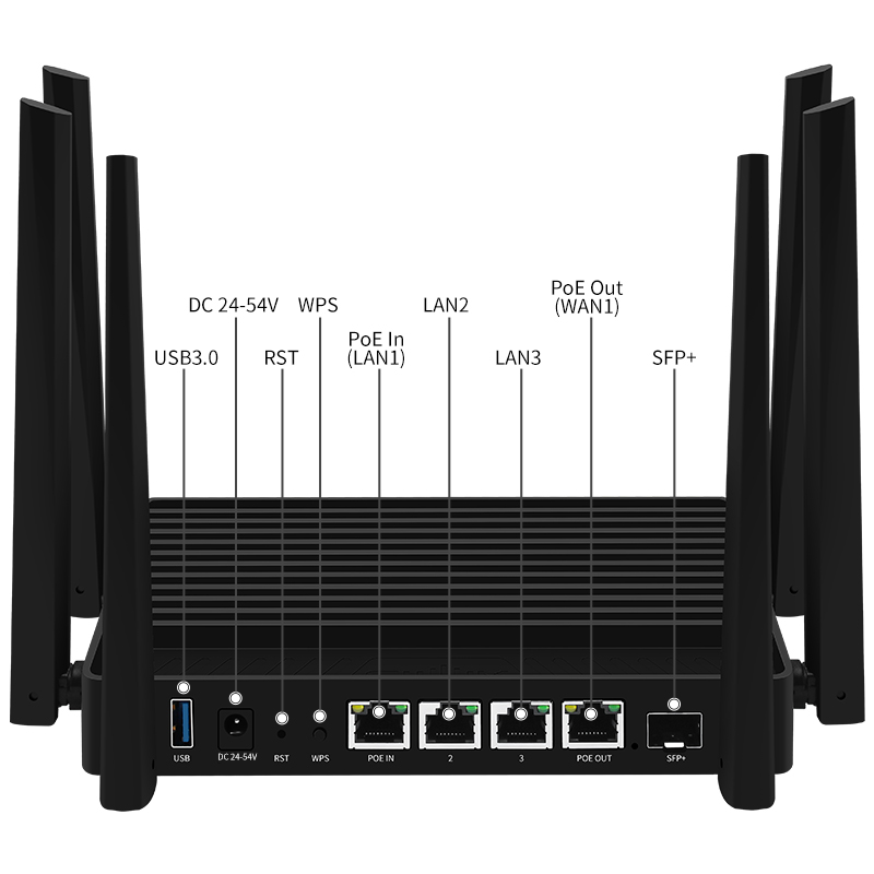 高通四核IPO5322 ARM Cortex-A53 | SFP+万兆光口 支持猫棒 | PoE In & PoE Out|4个2.5G RJ45网口 | 2GB内存 | 全铝合金机身 | 开源系统|支持Docker|