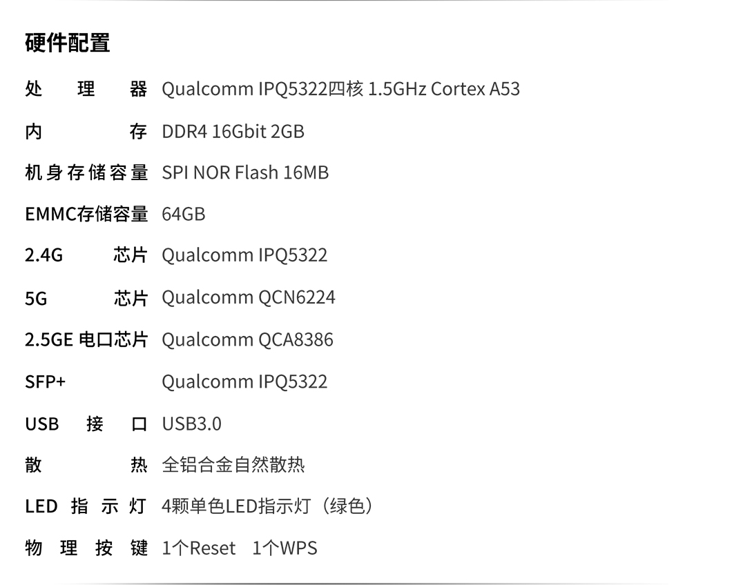 处理器 QualcommIPQ5322四核1.5GHz Cortex A53